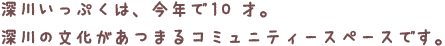2006年、深川資料館通り商店街が地域活性化の拠点として「深川いっぷく」を立ち上げました。元々は調剤薬局の跡地で、空き店舗対策事業としての取り組みでした。
