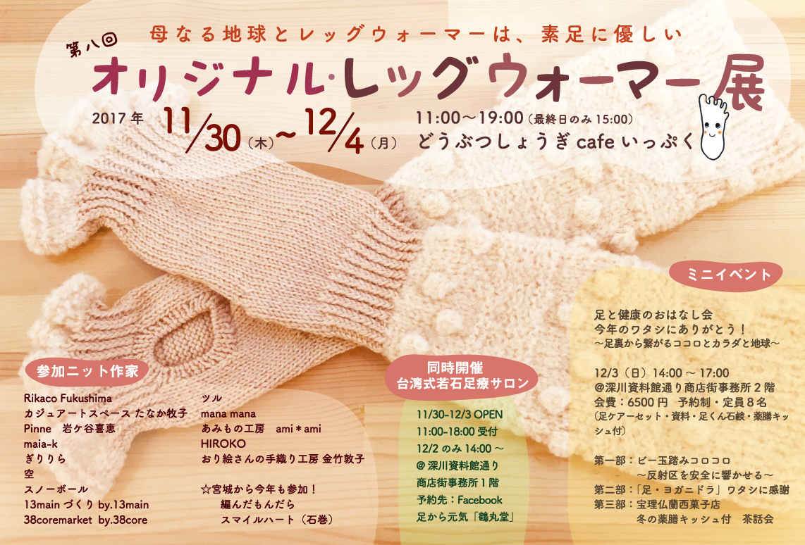 会期:2017年 11月30日(木)〜12/4(月) 11:00〜19:00(最終日のみ15:00)