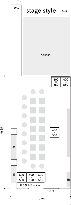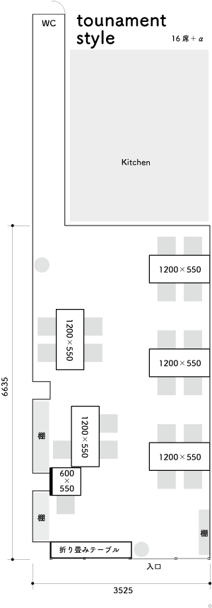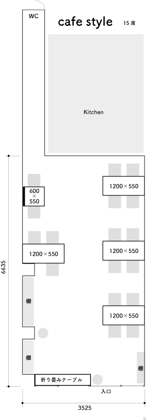机(60cm×60cm(2人掛け)から120cm×60cm(4人掛け)に可変するタイプ)…6卓