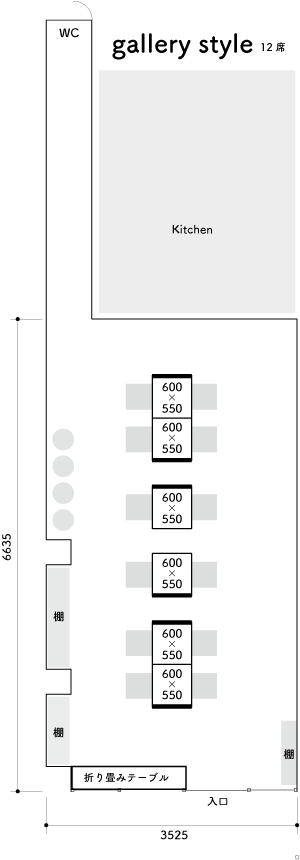 通常のカフェ営業をしながら、ギャラリー部分に展示していただく形と、店内全体をお使いになる展示で条件が異なります。